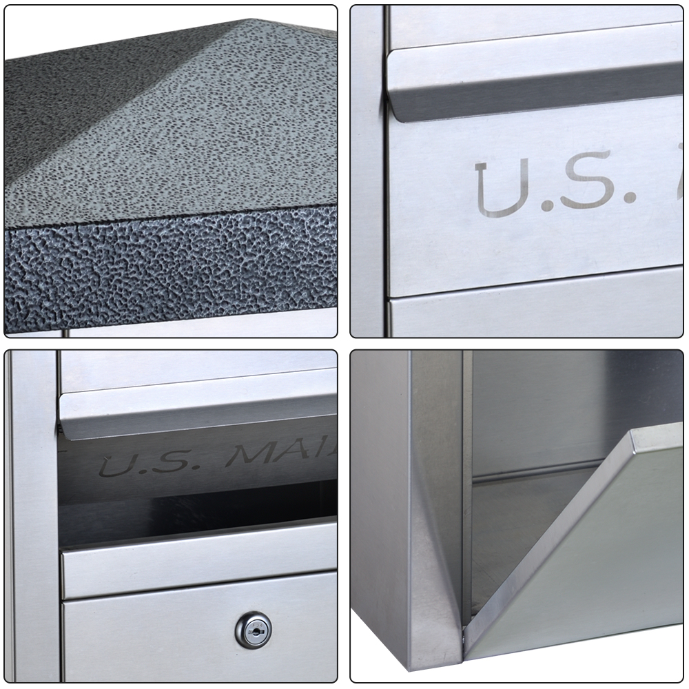 المتانة: نظرًا لأن صناديق البريد في الهواء الطلق تتعرض للعناصر ، فإن المتانة أمر بالغ الأهمية. اختر مواد مثل الفولاذ المقاوم للصدأ أو الألومنيوم أو الفولاذ المغلفة بالمسحوق والتي يمكن أن تصمد أمام ظروف الطقس المختلفة دون المساومة على الجماليات.