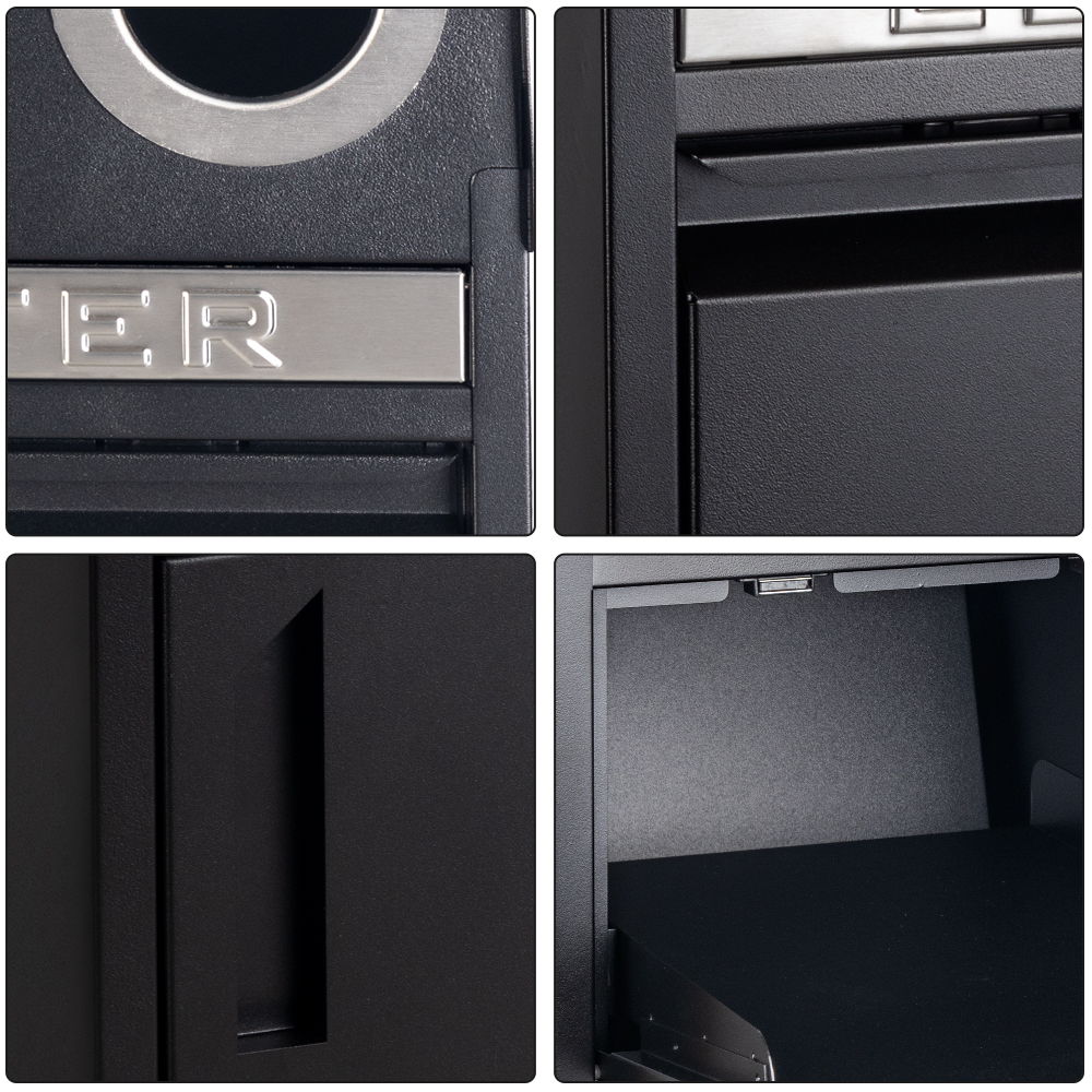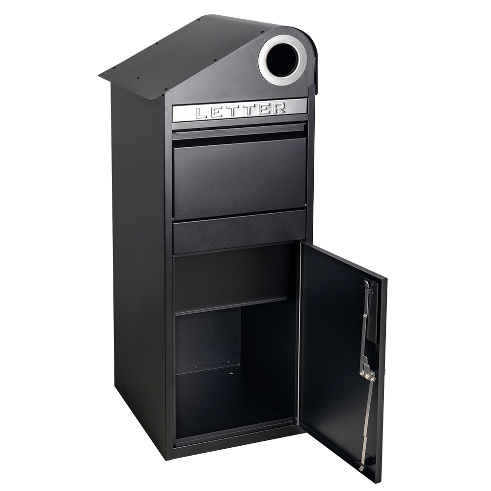 تدابير أمان محسّنة: عادةً ما يتم تجهيز صناديق إسقاط الطرود الأكبر بميزات أمان قوية ، بما في ذلك الأقفال المتينة والبناء المقاوم للعبث. هذا يضمن أن تظل الحزم آمنة ومحمية من السرقة أو العبث حتى يفتح صاحب المنزل الصندوق.
