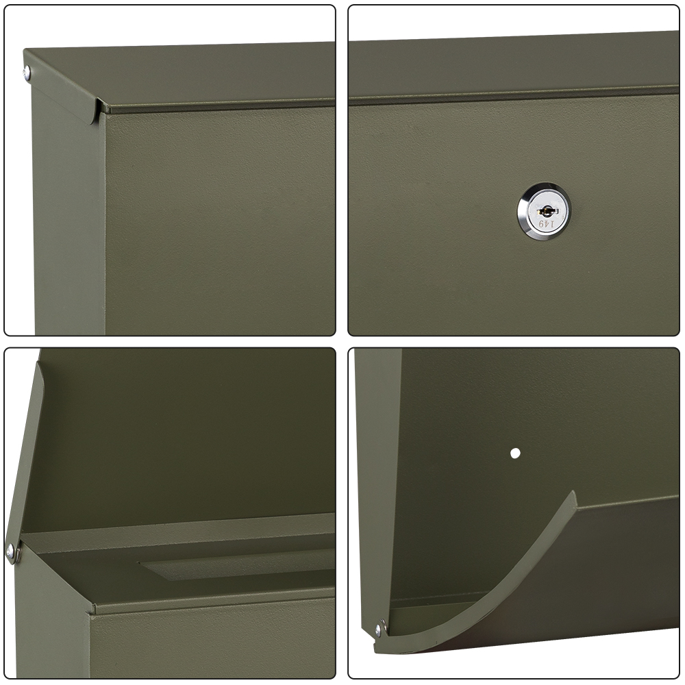 المتانة: نظرًا لأن صناديق البريد في الهواء الطلق تتعرض للعناصر ، فإن المتانة أمر بالغ الأهمية. اختر مواد مثل الفولاذ المقاوم للصدأ أو الألومنيوم أو الفولاذ المغلفة بالمسحوق والتي يمكن أن تصمد أمام ظروف الطقس المختلفة دون المساومة على الجماليات.
